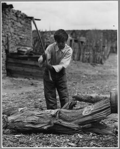 | Keywords: El Cerrito, San Miguel County, New Mexico. Firewood is used in considerable quantities all through . . . - NARA - 521191.tif Scope and content Full caption reads as follows El Cerrito San Miguel County New Mexico Firewood is used in considerable quantities all through the year Fortunately there is still a good supply of timber on parts of the mesa that can be hauled into the village by wagon Chopping up the logs for fuel is a regular daily chore which is often assigned to the small boys of the family The wood is almost all cedar General notes 521191 Local identifier 83-G-37839 Department of Agriculture Bureau of Agricultural Economics Division of Economic Information ca 1922 - ca 1953 NARA-Author Rusinow Irving Photographer 5307166 <br /> Still Picture Records Section Special Media Archives Services Division NWCS-S National Archives at College Park 8601 Adelphi Road College Park MD 20740-6001 1941 04 10 - 1941 04 16 Record group Record Group 83 Records of the Bureau of Agricultural Economics 1876 - 1959 Record group ARC 412 Photographic Prints Documenting Programs and Activities of the Bureau of Agricultural Economics and Predecessor Agencies compiled ca 1922 - ca 1947 documenting the period ca 1911 - ca 1947 Series ARC 521048 File unit File unit ARC Variant control numbers NAIL Control Number NWDNS-83-G-37839 yes Other versions <gallery> File El_Cerrito _San_Miguel_County _New_Mexico _Firewood_is_used_in_considerable_quantities_all_through_ _ _ _-_NARA_-_521191 tif tif File El_Cerrito _San_Miguel_County _New_Mexico _Firewood_is_used_in_considerable_quantities_all_through_ _ _ _-_NARA_-_521191 jpg jpg </gallery> NARA-cooperation PD-USGov NARA TIF images with categorized JPGs New Mexico Irving Rusinow |