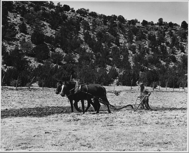 Keywords: El Cerrito, San Miguel County, New Mexico. The staple crops in El Cerrito are corn, beans and alfal . . . - NARA - 521209.tif Scope and content Full caption reads as follows El Cerrito San Miguel County New Mexico The staple crops in El Cerrito are corn beans and alfalfa Almost everything is grown on irrigated land although there are a few fields on the mesa where a certain amount of dry farming is carried on Most of the corn is of the native blue type which was first grown here by the Indians Some of the other types of corn are fed to stock but never the blue Alfalfa produces more feed per acre than any other plant and for this reason more than half the irrigated land is devoted to this crop There is little commercial farming in the village A few sacks of beans or bushels of peaches are sold each year and two families have small flocks of sheep which brings in a little money - but for the most part the emphasis here is on subsistence farming Food is produced for home consumption Even the livestock economy is at the subsistence level with each family owning one or two horses a cow or steer eight or ten chickens and perhaps a pig Money when there is any comes from outside work Now in April the Spring plowing begins General notes 521209 Local identifier 83-G-37857 Department of Agriculture Bureau of Agricultural Economics Division of Economic Information ca 1922 - ca 1953 NARA-Author Rusinow Irving Photographer 5307166 <br /> Still Picture Records Section Special Media Archives Services Division NWCS-S National Archives at College Park 8601 Adelphi Road College Park MD 20740-6001 1941 04 10 - 1941 04 16 Record group Record Group 83 Records of the Bureau of Agricultural Economics 1876 - 1959 Record group ARC 412 Photographic Prints Documenting Programs and Activities of the Bureau of Agricultural Economics and Predecessor Agencies compiled ca 1922 - ca 1947 documenting the period ca 1911 - ca 1947 Series ARC 521048 File unit File unit ARC Variant control numbers NAIL Control Number NWDNS-83-G-37857 yes Other versions <gallery> File El_Cerrito _San_Miguel_County _New_Mexico _The_staple_crops_in_El_Cerrito_are_corn _beans_and_alfal_ _ _ _-_NARA_-_521209 tif tif File El_Cerrito _San_Miguel_County _New_Mexico _The_staple_crops_in_El_Cerrito_are_corn _beans_and_alfal_ _ _ _-_NARA_-_521209 jpg jpg </gallery> NARA-cooperation PD-USGov NARA TIF images with categorized JPGs NARA images of New Mexico Irving Rusinow