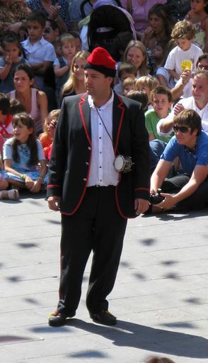 Keywords: El Flabiolaire Olot 2008.jpg en El Flabiolaire The Player of the Flabiol little one hand flute here not visible and the tamborí makes with the cobla a special Sardana orchestra the music for the dance of the giants The flabiolaire wears alwas the catalan barretina red cap Own Wamito 07 09 2008 Culture of Olot |