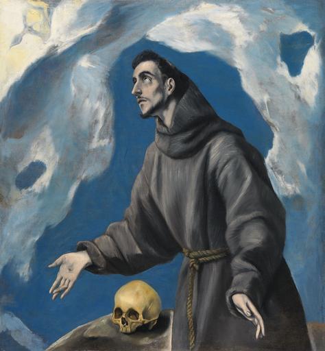Keywords: El Greco - St. Francis (National Gallery of Ireland).jpg Artwork Creator El Greco between 1590 1595 Oil on canvas size cm 114 104 National Gallery of Ireland object history credit line Presented Sir Hugh Lane 1914 accession number NGI 658 http //onlinecollection nationalgallery ie/view/objects/asitem/People 811/0 National Gallery of Ireland online collection PD-old-100-1923 DEFAULTSORT El Greco; Saint Francis; NGI Francis of Assisi by El Greco Paintings in the National Gallery of Ireland Stigmatisation of Francis of Assisi by El Greco 1590s oil on canvas paintings 1590s paintings from Spain 16th-century paintings of Francis of Assisi Paintings of males with skulls Men looking up in art |
