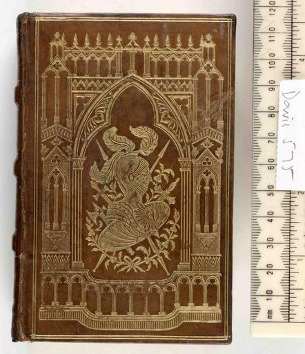 | Keywords: El ingenisoso hidalgo Don Quijote de la Mancha - Upper cover (Davis575).jpg Style Pictorial Cathedral; Caption Upper cover; Colour Brown; Edge Gilt exhibition history Decorative Technique Blocked in gold Painted; Cover Material Calf Turn ins tooled in gold Signed SIMIER R DE Roi at foot of spine and binder's ticket on verso of upper free endleaf 2 green ribbon markers False headbands both loose 3 raised spine bands Black paint on spine around rosette motif Marbled endleaves object history Text 1827; Paris; Unspecified object type Cc-zero place of creation Binding France place of discovery M M Foot The Henry Davis Gift vol III London 2010 Paul Culot Reliures et reliures decorees en France a l'epoque romantique Bruxelles 1995 A similar example is shown in Bibliotheca Wittockiana Bruxelles Relieurs et reliures 1995 p 128-129 n 56 British Library image http //www bl uk/catalogues/bookbindings/LargeImage aspx RecordId 020-000004278 ImageId ImageId 41744 Copyright BL El ingenisoso hidalgo Don Quijote de la Mancha Uploaded with GWToolset El ingenisoso hidalgo Don Quijote de la Mancha - Upper cover Davis575 http //www webarchive org uk/bldatasets/bindings/6288_4 jpg 19th-century bookbinding Bookbinding British Library Bookbindings |