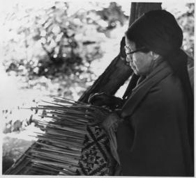 | Keywords: Elderly Native American Woman Weaving a Basket at Oconaluftee Village, NC. - NARA - 281615.tif Scope and content General notes 281615 Local identifier Department of the Interior Indian Arts and Crafts Board Cherokee Field Office Cherokee North Carolina 1963 - NARA's Southeast Region Atlanta NRCA 5780 Jonesboro Road Morrow GA 30260 Record group Record Group 435 Records of the Indian Arts and Crafts Board 1929 - 1988 Record group ARC 723 Cherokee Field Office Records compiled 1968 - 1983 Series ARC 281596 File unit File unit ARC Variant control numbers NAIL Control Number NRCA-435-ART001-EN334A 1 yes Other versions <gallery> File Elderly_Native_American_Woman_Weaving_a_Basket_at_Oconaluftee_Village _NC _-_NARA_-_281615 tif tif File Elderly_Native_American_Woman_Weaving_a_Basket_at_Oconaluftee_Village _NC _-_NARA_-_281615 jpg jpg </gallery> NARA-cooperation PD-USGov Oconaluftee Mountain Farm Museum Native American basket weaving Cherokee people NARA TIF images with categorized JPGs |