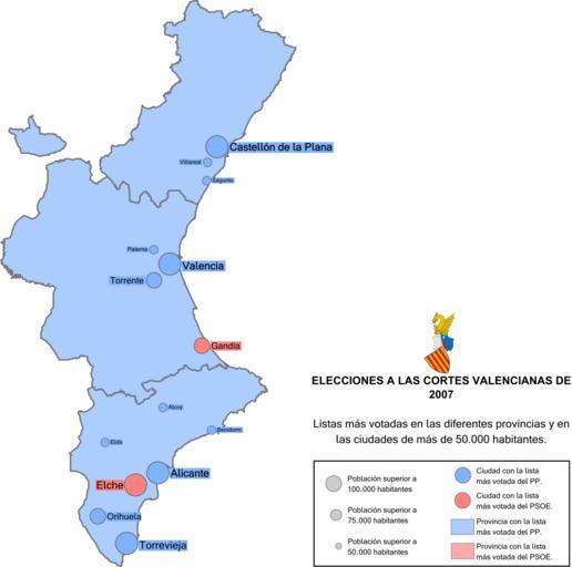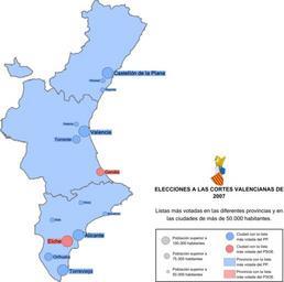 | Keywords: Elecciones autonómicas Cortes Valenciana 2007.svg es Mapa de provincias y principales ciudades valencianas con el resultado de las elecciones a las Cortes Valencianas Corts Valencianes del 2007 own Xinese-v Libre Maps of the Land of Valencia Politics of the Land of Valencia |