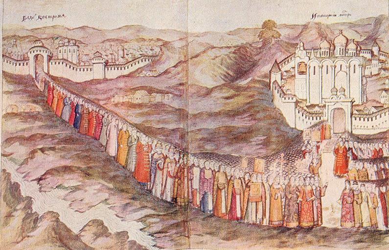 | Keywords: Election of Michael I of Russia 01.jpg  Святитель Феодо ит Рязанский во главе посольства Великого Поместного и Земского Собо а 1613 года п изывает на Ца ство  ихаила Феодо овича Романова К естный ход кост омичей в Ипатьевский монасты ь 14 ма та 1613 года  иниатю а из «Книги об изб ании на ца ство на п евысочайший п естол великаго  оссийскаго ца ствия Великаго Госуда я и Великаго Князя  ихаила Феодо овича всея великия России Сам оде жца 1673 год» http //www imperialhouse ru/rus/imperialhouse/orthodox/guardians/2/2105 html 17 век anonymous PD-Art Book of election of Michael I of Russia 0314 Files uploaded by Shakko from various sources |