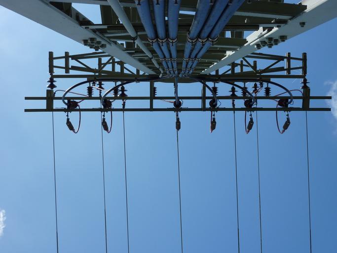 Keywords: electric e werk high voltage isolation current electricity power generation power poles energy power line strommast environment upper lines
