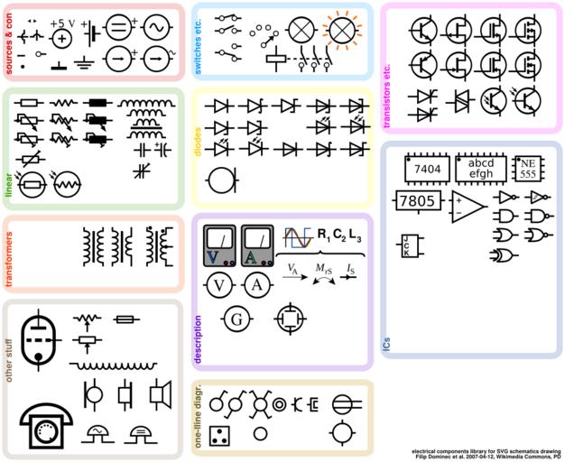 | Keywords: Electrical symbols library.svg en This list of electronic components is intended to make drawing of schematics simple fast and very flexible using common vector image editors eo Listo de simboloj por elektronikaj partoj kiun oni povas uzi pro krei skemojn simple rapide kaj flekse per komunaj vektorbildiloj ru Этот набо заготовок п едназначен для быст ого исования элект ических схем используя едакто ы векто ной г афики de Diese Zusammenstellung an elektronischen Bauelementen soll die Erstellung von Schaltplänen vereinfachen und mit SVG-Editoren erleichtern it Questa lista di componenti elettrici è stata creata per rendere più semplice veloce e flessibile il disegno di schemi elettrici usando un editor per immagini vettoriali nl Deze verzameling van electronische schemasymbolen is bedoeld om gemakkelijk snel en flexibel schema's te kunnen tekenen met standaard bewerkingsprogrammatuur voor vectorafbeeldingen pl Zestaw symboli do budowania schematów elektronicznych w sposób prosty szybki i elastyczny z użyciem popularnych edytorów grafiki wektorowej 2007-02-04 Own User FDominec et al SVG Created with Inkscape v none Relay symbols svg SPST-NO relay symbol svg For circuit drawers All components are snapped to 2 mm grid as possible Turn on node snapping to create nice and precise schematics in SVG The lines are 1 mm thick The text is 20-sized free sans or something such Feel free to edit and replace with a new version You can use the Created with ElCompLib template by your schematics Some images created using this list See Category Created with electrical symbols library for more examples <gallery mode packed > File Transistor amplifier blocked emitor svg Transistor amplifier File Diodes in bjt svg Internal diodes in BJTs File Sine sqare triangle generator blocks svg Sine/Square/Triangle generator with op amps File Ttl demultiplexer 3x 2bit svg 3x 2bit demultiplexer </gallery> SVG electrical symbols Symbol charts |
