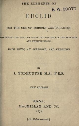 | Keywords: Elements title page.jpg This is the title page of The Elements of Euclid for the Use of Schools and Colleges 1872 It was translated by Issac Todhunter The image comes from Archive org Archive org Issac Todhunter The Elements of Euclid for the Use of Schools and Colleges PD-old |