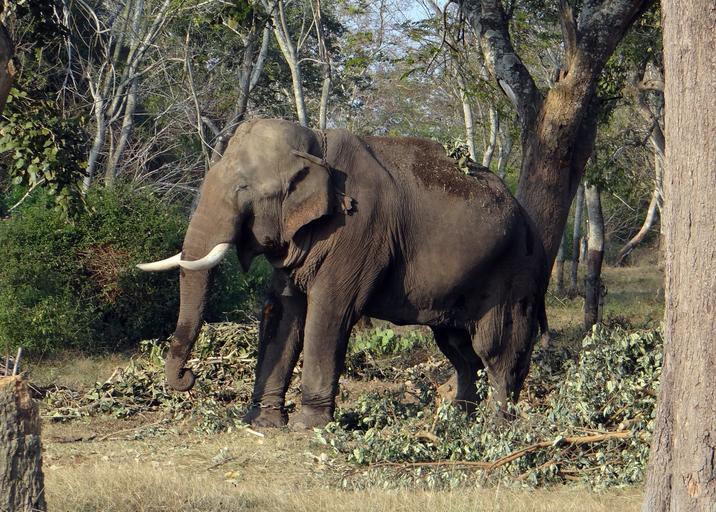Keywords: elephant india tusker animal mammal wildlife pachyderm wounded park national bandipora bandipur karnataka