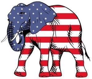 Keywords: elephant usa american flag election republican party stars vote animal stripes united trunk states wildlife white nature artwork mammal wild africa cartoon red national natural patriotic blue mascot