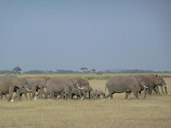 Keywords: elephants family savannah kenya wildlife african group mammal nature wild big animal safari herd