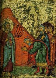 Keywords: Elijah in the desert 05.jpg Авдий посланник ца я Ахава вст ечает Илию Клеймо иконы «Илия П о ок в пустыне с житием и деисусом» http //www icon-art info/masterpiece php lng ru mst_id 479 XIII c RusIcon PD-old Elijah in the desert icon in the Tretyakov Gallery |