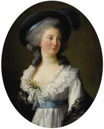 | Keywords: Elisabeth Louise Vigée-LeBrun - Portrait de Madame de Moreton, La Comtesse de Moreton de Chabrillan.jpg Artwork Creator Elisabeth Vigée-Lebrun Marie-Elisabeth Olive née Frottier de la Coste-Messeliére Comtesse de Moreton de Chabrillon 1761-1807 1782 Oil on canvas in 27 20 object history Marie-Elisabeth Olive née Frottier de la Coste-Messeliére Comtesse de Moreton de Chabrillon 1761-1807 France;<br/>Acquired by descent to the family;<br/>Purchased by Edouard Noetzlin Paris France 1920s;<br/>Private Collection Paris France;<br/>With dealer Frederick Mont Inc New York in 1950;<br/>Sold Christie's London November 29 1974 lot 58;<br/>Newhouse Galleries New York NY;<br/>Mr and Mrs F Howard Walsh Fort Worth Texas;<br/>Walsh Family Art Trust credit line Signed E L LeBrun and dated 1782 at lower right see source accession number http //fineart ha com/c/item zx saleNo 638 lotNo 24064 Heritage Auctions <gallery>Izabela Lubomirska jpg supposed to be a portrait of Izabela Lubomirska The Blue Marquise</gallery> PD-old-100 DEFAULTSORT 1782; Mme de Moreton or Izabela Lubomirska Images from Heritage Auctions Elisabeth_Louise_Vigée-LeBrun Portrait paintings by Élisabeth Vigée-Lebrun French nobility Female portraits by Élisabeth Vigée-Lebrun 18th-century portrait paintings location missing 1782 oil on canvas paintings 1782 portrait paintings from France 18th-century oil oval portraits of women at half length Feathered headdresses in art female Female hair fashion in art Females with blue belts in art Females with white dresses in art Muslin dresses Portrait paintings of females with flowers Portrait paintings of women wearing hats Portraits with shawls Three-quarter view portrait paintings of women Women facing left and looking right in art 1780s dresses |