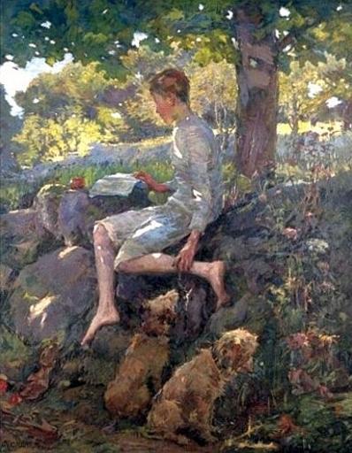 Keywords: Elizabeth Adela Forbes - The Half Holiday.jpg The Half Holiday - Alec Home From School oil on canvas 122c x 97 cm Creator Elizabeth Adela Forbes photographical reproduction in the public domain PD-old-auto 1912 Elizabeth Adela Forbes Reading in art