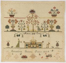 | Keywords: Elizabeth Rowe Terry, American - Sampler - Google Art Project.jpg American 4091368 Elizabeth Rowe Terry /collection/cooper-hewitt-national-design-museum/artwork/sampler-elizabeth-rowe-terry-american/6717268/ 75169 Elizabeth Rowe Terry American /artist/elizabeth-rowe-terry/6826643/ 6826643 /collection/cooper-hewitt-national-design-museum/ Cooper-Hewitt National Design Museum 3644669 http //www cooperhewitt org/ /collection/cooper-hewitt-national-design-museum/artwork/sampler-elizabeth-rowe-terry-american/6717268/ 1828 1828 Medium silk embroidery on linen foundationTechnique embroidered in cross and eyelet stitches on plain weave foundation By 1941 Mrs Henry E Coe Eva Johnston Coe 1941 Museum for the Arts of Decoration of the Cooper Union 390 6717268 False 1828 1941-69-107 http //collection cooperhewitt org/view/objects/asitem/id/75169 Bequest of Mrs Henry E Coe Sampler 1820 1830 w410 x h390 cm 1828 False 1 04065040650407 Object sampler-elizabeth-rowe-terry-american Sampler s 410 Ethel Stanwood Bolton and Eva Johnston Coe American Samplers Boston The Massachusetts Society of the Colonial Dames of America 1921 229 H x W 39 x 41 cm 15 3/8 x 16 1/8 in New York New York Museum of Early American Folk Arts Collector's Choice Part II May 12 to July 5 1970 Elizabeth Rowe Terry 1828 Medium silk embroidery on linen foundationTechnique embroidered in cross and eyelet stitches on plain weave foundation By 1941 Mrs Henry E Coe Eva Johnston Coe 1941 Museum for the Arts of Decoration of the Cooper Union special url_id NwE1g3naOOzHhg PD-old-100 Google Art Project works by Elizabeth Rowe Terry Textiles in the Cooper “Hewitt Smithsonian Design Museum 1820s samplers Google Art Project works in Cooper-Hewitt Smithsonian Design Museum 1828 works |