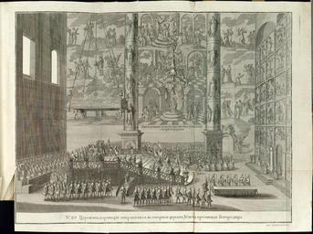 | Keywords: Elizabeth of Russia's coronation album 04.jpg ru Качалов Г А 1711 или 1712 1759 Це емония ко онации п оходившая в Успенском собо е 1744 По исунку Э Г иммеля Офо т езец 41 6х55 5 Изоб ажение оче чено Обстоятельное описание то жественных по ядков благополучнаго вшествия в ца ствующий г ад оскву и священнейшаго ко онования ея августейшаго импе ато скаго величества всеп есветлейшия де жавнейшия великия госуда ыни импе ат ицы Елисавет Пет овны самоде жицы все оссийской еже бысть вшествие 28 фев аля ко онование 25 ап еля 1742 года - Санктпете бу г печ п и Импе ато ской акад наук 1744 - 2 168 с 1 л ф онт 49 л ил пл - Г ав тит л 18th-century tretyakovgallery ru 18th-century engravers PD-Art Elizabeth of Russia's coronation album Engravings in the Moscow State Historical Museum Uploaded with UploadWizard |