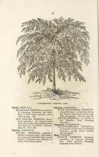 | Keywords: Ellwanger and Barry's descriptive catalogue of ornamental trees and shrubs, roses, flowering plants, etc., etc., etc (16249829238).jpg 24 <br> CAMPERDOWN WEEPING ELM <br> Birch BETULA <br> EUROPEAN WEEPING pendula <br> A charming drooping tree after <br> four or five years' growth ; erect <br> when young 50c <br> CUT LEAVED WEEPING lasci- <br> niata pendula An elegant erect <br> tree with slender drooping branches <br> and delicately cut leaves See cut <br> page 23 1 to 2 <br> Cherry CERASLS <br> DWARF WEEPING pumila <br> Grafted standard high ; this makes <br> a curious and beautiful little round <br> headed drooping tree difficult to <br> work and always scarce <br> Cherry CERASUS <br> EVER FLOWERING WEEPING <br> semperfiorens A very fine droop- <br> ing variety that bears flowers and <br> fruit all summer See cut page 22 <br> AVIUM PENDULA A variety of <br> the Morello with drooping <br> branches <br> Cypress CUPRESSUS <br> GLYPTOSTROBUS PENDULA <br> A beautiful variety with horizontal <br> branches; young shoots slender <br> and drooping <br> Elm ULMUS <br> SCOTCH WEEPING montana <br> pendula A vigorous growing <br> tree with graceful drooping <br> branches very distinct 42747611 136502 68419 Page 24 Text http //www biodiversitylibrary org/page/42747611 1868 10 1080/00222930308678875 Ellwanger Barry ; Henry G Gilbert Nursery and Seed Trade Catalog Collection ; Mount Hope Nurseries NameFound Cerasus NameConfirmed Cerasus EOLID 31410 NameBankID 3462586 NameFound Cupressus NameConfirmed Cupressus EOLID 11434051 NameBankID 2663803 NameFound Glyptostrobus pendula NameConfirmed Glyptostrobus pendulus Forbes Endl NameBankID 8713867 Biodiversity Heritage Library Ellwanger Barry's descriptive catalogue of ornamental trees and shrubs roses flowering plants etc etc etc Garden Stories Catalogs Ellwanger Barry Nurseries Horticulture Nursery stock Ornamental trees Plants Shrubs U S Department of Agriculture National Agricultural Library bhl page 42747611 dc identifier http //biodiversitylibrary org/page/42747611 Camperdown weeping elm bhlGardenStories BHLinbloom ellwanger barry nurseries horticulture u s department of agriculture national agricultural library bhlgardenstories bhlinbloom Information field Flickr posted date ISOdate 2015-02-03 CC-BY-2 0 BioDivLibrary https //flickr com/photos/61021753 N02/16249829238 2015-08-25 01 56 24 cc-by-2 0 PD-old-70-1923 Ellwanger Barry's descriptive catalogue of ornamental trees and shrubs roses flowering plants etc etc etc Photos uploaded from Flickr by Fæ using a script |