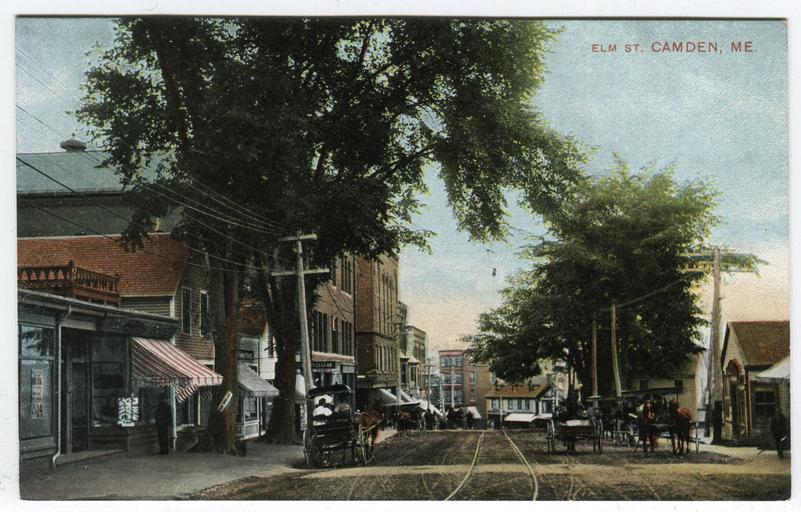 | Keywords: postcards camden elm street elmstreet trolley carriages streets downtown outdoor [2 copies] A colorized view of Elm Street in Camden, looking toward downtown, probably around the early 1900's. Carriages line the street. The trolley lines can be seen in the middle of Elm Street. [2 copies] A colorized view of Elm Street in Camden, looking toward downtown, probably around the early 1900's. Carriages line the street. The trolley lines can be seen in the middle of Elm Street. | ||||