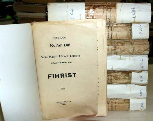 | Keywords: Elmalı 35 baskısı.jpg The original print of the first Quran in Turkish language ordered by Atatürk Elmalı 35 copies ELMALILI HAMDİ'NİN KURAN TEFSİRİ 7 CİLT 7 VOLUMES + FİHRİST KİTAP - MEALLİ Tà RKÇE TEFSİR - WRITER - DERSİAMDAN ELMALILI MUHAMMED HAMDİ YAZIR - PUBLISHER EBUZİYA - PRINT DATE-1935 - 16 5 X 24 - 5868 PAGES 1935 print of Hak Dini Kur'an Dili A Qur'anic exegesis and translation of Qur'an in Turkish Impressão original do primeiro Corão em turco comissionada por Atatürk Elmalı 35 baskısı ELMALILI HAMDİ'NİN KURAN TEFSİRİ 7 CİLT + FİHRİST KİTAP - MEALLİ Tà RKÇE TEFSİR - YAZARI - DERSİAMDAN ELMALILI MUHAMMED HAMDİ YAZIR - MATBAYİ EBUZİYA - BASIM YILI-1935 - 16 5 X 24 - 5868 SAYFA Own 3210 Elmalılı Muhammed Hamdi Yazır Qur'an Book covers from Turkey |