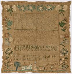 Keywords: Elmira Cressey - Sampler - Google Art Project.jpg ~ 1826 1812 1812 Elmira 6793958 Cressey 1812 - 1812 /collection/cooper-hewitt-national-design-museum/artwork/sampler-elmira-cressey/6857110/ 155628 Elmira Cressey /artist/elmira-cressey/29162186/ 29162186 /collection/cooper-hewitt-national-design-museum/ Cooper-Hewitt National Design Museum 3644669 http //www cooperhewitt org/ /collection/cooper-hewitt-national-design-museum/artwork/sampler-elmira-cressey/6857110/ 1826 ca 1826 Medium silk embroidery on linen foundationTechnique embroidered in cross chain satin eye stem and speckling stitches on plain weave foundation; counted and uncounted stitches Ex coll Fraser-Martin Donor's Notes Bought in Exeter New Hampshire 6857110 False 1826 1976-100-19 http //collection cooperhewitt org/view/objects/asitem/id/155628 Gift of Anonymous Donor from the Fraser/Martin Collection Sampler 1820 1830 ca 1826 False 0 974609375 Object sampler-elmira-cressey Sampler s H x W 40 6 x 38 7 cm 16 x 15 1/4 in Elmira Cressey aged 14 Born May 23 1812 Medium silk embroidery on linen foundationTechnique embroidered in cross chain satin eye stem and speckling stitches on plain weave foundation; counted and uncounted stitches Ex coll Fraser-Martin Donor's Notes Bought in Exeter New Hampshire special url_id qgFGt8jn6RsG7w PD-old-100-1923 1812 Google Art Project works by Elmira Cressey Textiles in the Cooper “Hewitt Smithsonian Design Museum 1820s samplers Google Art Project works in Cooper-Hewitt Smithsonian Design Museum 1826 works |