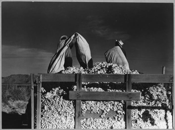 | Keywords: Eloy District, Pinal County, Arizona. Migratory cotton pickers dump their sacks into the field wagon . . . - NARA - 522253.jpg Scope and content Full caption reads as follows Eloy District Pinal County Arizona Migratory cotton pickers dump their sacks into the field wagon Wages - 75 per hundred pounds Late afternoon General notes 522253 Local identifier 83-G-44084 Department of Agriculture Bureau of Agricultural Economics Division of Economic Information ca 1922 - ca 1953 NARA-Author Lange Dorothea 1895-1965 Photographer 1372774 <br /> Still Picture Records Section Special Media Archives Services Division NWCS-S National Archives at College Park 8601 Adelphi Road College Park MD 20740-6001 11/1940 Record group Record Group 83 Records of the Bureau of Agricultural Economics 1876 - 1959 Record group ARC 412 Photographic Prints Documenting Programs and Activities of the Bureau of Agricultural Economics and Predecessor Agencies compiled ca 1922 - ca 1947 documenting the period ca 1911 - ca 1947 Series ARC 521048 File unit File unit ARC Variant control numbers NAIL Control Number NWDNS-83-G-44084 Other versions <gallery> File Eloy_District _Pinal_County _Arizona _Migratory_cotton_pickers_dump_their_sacks_into_the_field_wagon_ _ _ _-_NARA_-_522253 tif tif File Eloy_District _Pinal_County _Arizona _Migratory_cotton_pickers_dump_their_sacks_into_the_field_wagon_ _ _ _-_NARA_-_522253 jpg jpg </gallery> NARA-cooperation PD-USGov Dorothea Lange Eloy Arizona 1940 in Arizona November 1940 in the United States Cotton sacks Wagons in the United States Agricultural transport Agricultural workers Men at work in the United States Wages in the United States |