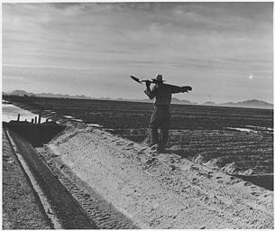 | Keywords: nara:arcid=522525 u.s. national archives usnationalarchives dorothea lange dorothealange eloy district eloydistrict man farmer farming agriculture shovel canal irrigation irrigator b/w bw blackandwhite monochrome outdoor black and white Original Caption: Eloy District, Pinal County, Arizona. Mexican irrigator on duty preparing field for flax cultivation. To read more about the photographic holdings of the National Archives, visit the "History Through the Camera Lens " blog post on the AOTUS Blog. U.S. National Archives’ Local Identifier: 83-G-44356 From:: Series: Photographic Prints Documenting Programs and Activities of the Bureau of Agricultural Economics and Predecessor Agencies, compiled ca. 1922 - ca. 1947, documenting the period ca. 1911 - ca. 1947 Created By:: Department of Agriculture. Bureau of Agricultural Economics. Division of Economic Information. (ca. 1922 - ca. 1953) Production Date: 11/1940 Photographer: Lange, Dorothea Persistent URL: arcweb.archives.gov/arc/action/ExternalIdSearch?id=522525 Repository: Still Picture Records Section, Special Media Archives Services Division (NWCS-S), National Archives at College Park, 8601 Adelphi Road, College Park, MD, 20740-6001. For information about ordering reproductions of photographs held by the Still Picture Unit, visit: www.archives.gov/research/order/still-pictures.html Reproductions may be ordered via an independent vendor. NARA maintains a list of vendors at www.archives.gov/research/order/vendors-photos-maps-dc.html Access Restrictions: Unrestricted Use Restrictions: Unrestricted Original Caption: Eloy District, Pinal County, Arizona. Mexican irrigator on duty preparing field for flax cultivation. To read more about the photographic holdings of the National Archives, visit the "History Through the Camera Lens " blog post on the AOTUS Blog. U.S. National Archives’ Local Identifier: 83-G-44356 From:: Series: Photographic Prints Documenting Programs and Activities of the Bureau of Agricultural Economics and Predecessor Agencies, compiled ca. 1922 - ca. 1947, documenting the period ca. 1911 - ca. 1947 Created By:: Department of Agriculture. Bureau of Agricultural Economics. Division of Economic Information. (ca. 1922 - ca. 1953) Production Date: 11/1940 Photographer: Lange, Dorothea Persistent URL: arcweb.archives.gov/arc/action/ExternalIdSearch?id=522525 Repository: Still Picture Records Section, Special Media Archives Services Division (NWCS-S), National Archives at College Park, 8601 Adelphi Road, College Park, MD, 20740-6001. For information about ordering reproductions of photographs held by the Still Picture Unit, visit: www.archives.gov/research/order/still-pictures.html Reproductions may be ordered via an independent vendor. NARA maintains a list of vendors at www.archives.gov/research/order/vendors-photos-maps-dc.html Access Restrictions: Unrestricted Use Restrictions: Unrestricted |