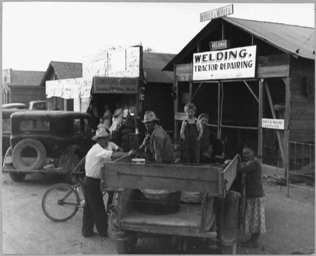 | Keywords: Eloy, Pinal County, Arizona. Cotton pickers come to town to buy their week's supply of food on Satur . . . - NARA - 522284.jpg Scope and content Full caption reads as follows Eloy Pinal County Arizona Cotton pickers come to town to buy their week's supply of food on Saturday afternoon General notes 522284 Local identifier 83-G-44115 Department of Agriculture Bureau of Agricultural Economics Division of Economic Information ca 1922 - ca 1953 NARA-Author Lange Dorothea 1895-1965 Photographer 1372774 <br /> Still Picture Records Section Special Media Archives Services Division NWCS-S National Archives at College Park 8601 Adelphi Road College Park MD 20740-6001 11/1940 Record group Record Group 83 Records of the Bureau of Agricultural Economics 1876 - 1959 Record group ARC 412 Photographic Prints Documenting Programs and Activities of the Bureau of Agricultural Economics and Predecessor Agencies compiled ca 1922 - ca 1947 documenting the period ca 1911 - ca 1947 Series ARC 521048 File unit File unit ARC Variant control numbers NAIL Control Number NWDNS-83-G-44115 Other versions <gallery> File Eloy _Pinal_County _Arizona _Cotton_pickers_come_to_town_to_buy_their_week's_supply_of_food_on_Satur_ _ _ _-_NARA_-_522284 tif tif File Eloy _Pinal_County _Arizona _Cotton_pickers_come_to_town_to_buy_their_week's_supply_of_food_on_Satur_ _ _ _-_NARA_-_522284 jpg jpg </gallery> NARA-cooperation PD-USGov Dorothea Lange Eloy Arizona |