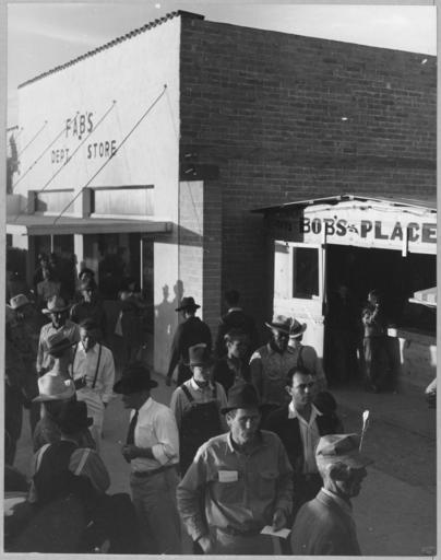 | Keywords: Eloy, Pinal County, Arizona. Crowds of cotton pickers on main street of Eloy late Saturday afternoon. - NARA - 522055.jpg Scope and content Full caption reads as follows Eloy Pinal County Arizona Crowds of cotton pickers on main street of Eloy late Saturday afternoon General notes 522055 Local identifier 83-G-41850 Department of Agriculture Bureau of Agricultural Economics Division of Economic Information ca 1922 - ca 1953 NARA-Author Lange Dorothea 1895-1965 Photographer 1372774 <br /> Still Picture Records Section Special Media Archives Services Division NWCS-S National Archives at College Park 8601 Adelphi Road College Park MD 20740-6001 11/1940 Record group Record Group 83 Records of the Bureau of Agricultural Economics 1876 - 1959 Record group ARC 412 Photographic Prints Documenting Programs and Activities of the Bureau of Agricultural Economics and Predecessor Agencies compiled ca 1922 - ca 1947 documenting the period ca 1911 - ca 1947 Series ARC 521048 File unit File unit ARC Variant control numbers NAIL Control Number NWDNS-83-G-41850 Other versions <gallery> File Eloy _Pinal_County _Arizona _Crowds_of_cotton_pickers_on_main_street_of_Eloy_late_Saturday_afternoon _-_NARA_-_522055 tif tif File Eloy _Pinal_County _Arizona _Crowds_of_cotton_pickers_on_main_street_of_Eloy_late_Saturday_afternoon _-_NARA_-_522055 jpg jpg </gallery> NARA-cooperation PD-USGov Dorothea Lange Eloy Arizona |