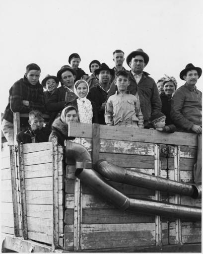 Keywords: Eloy, Pinal County, Arizona. Truckload of cotton pickers just pulled into town in the late afternoon . . . - NARA - 522530.jpg Scope and content Full caption reads as follows Eloy Pinal County Arizona Truckload of cotton pickers just pulled into town in the late afternoon Fresh from Arkansas We come over to help folks pick their cotton General notes 522530 Local identifier 83-G-44361 Department of Agriculture Bureau of Agricultural Economics Division of Economic Information ca 1922 - ca 1953 NARA-Author Lange Dorothea 1895-1965 Photographer 1372774 <br /> Still Picture Records Section Special Media Archives Services Division NWCS-S National Archives at College Park 8601 Adelphi Road College Park MD 20740-6001 11/1940 Record group Record Group 83 Records of the Bureau of Agricultural Economics 1876 - 1959 Record group ARC 412 Photographic Prints Documenting Programs and Activities of the Bureau of Agricultural Economics and Predecessor Agencies compiled ca 1922 - ca 1947 documenting the period ca 1911 - ca 1947 Series ARC 521048 File unit File unit ARC Variant control numbers NAIL Control Number NWDNS-83-G-44361 Other versions <gallery> File Eloy _Pinal_County _Arizona _Truckload_of_cotton_pickers_just_pulled_into_town_in_the_late_afternoon_ _ _ _-_NARA_-_522530 tif tif File Eloy _Pinal_County _Arizona _Truckload_of_cotton_pickers_just_pulled_into_town_in_the_late_afternoon_ _ _ _-_NARA_-_522530 jpg jpg </gallery> NARA-cooperation PD-USGov Dorothea Lange Eloy Arizona |
