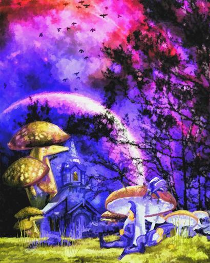 Keywords: elves surreal fantasy landscape story book magical dream twilight elf creative enchanting mythological colorful art digital art digital painting artwork artistic enchantment