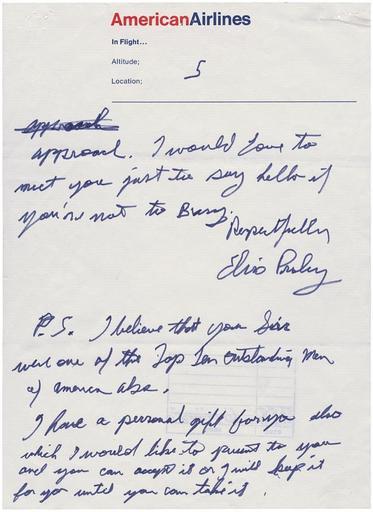 MAKE A MEME View Large Image Elvis Letter R-017 - Page 5 of 6.jpg en On the morning of December 21 1970 Elvis Presley personally delivered a letter to the northwest gate of the White House Written on American Airlines stationery the five-page letter requested a meeting ...