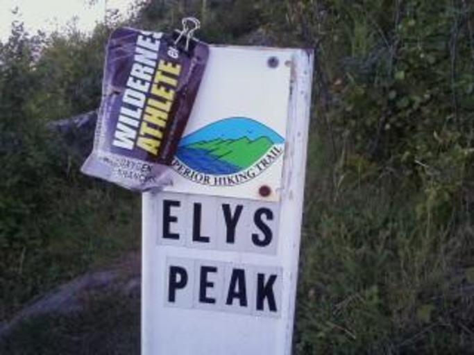 Keywords: Ely's Peak, Superior Hiking Trail, Duluth, Minn.JPG en The Superior Hiking Trail logo designates reaching this rocky summit 2011-09-05 own PhillipGarySmith cc-zero Uploaded with UploadWizard Superior Hiking Trail