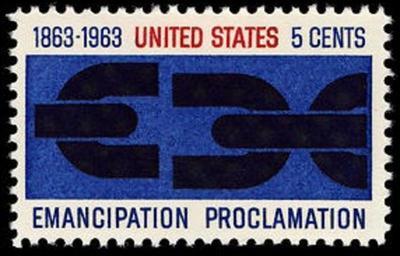 | Keywords: Emancipation Proclamation 1963 U.S. stamp.1.jpg en The Emancipation Proclamation was commemorated with a 5-cent stamp on the 100th anniversary of the Emancipation Proclamation on August 16 1963 It was the opening day of the Century of Negro Progress Exposition in Chicago Illinois This stamp was designed by Georg Olden picturing a severed link in a massive black chain against a blue background 2014-03-21 16 17 10 Arago people postage the post National Postal Museum Viewed March 21 2014 U S Postal Department PD-USGov Uploaded with UploadWizard History of the United States Stamps of the United States 1961-1970 Emancipation Proclamation |