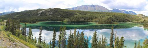 Keywords: emerald lake yukon carcross panoramic image lake mirroring panorama