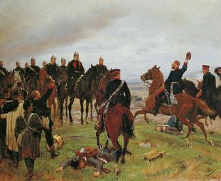 | Keywords: Emil Hünten - Die Schlacht bei Königgrätz (1883).jpg Artwork Creator Emil Hünten 1883 Oil on canvas cm 110 120 object history Süddeutsche Privatsammlung credit line Signiert und datiert unten rechts E Hünten 83 Erster Entwurf des Malers Josef Emil Hünten in Düsseldorf zu dem von ihm in der Feldhalle des königl Zeughauses in Berlin ausgeführten Wandgemälde https //www lempertz com/de/kataloge/lot/927-1/75-emil-huenten html Kunsthaus Lempertz 01 10 2008 lot 75 <gallery>File Schlacht-bei-königgrätz jpg</gallery> PD-old-100 DEFAULTSORT Hunten Emil; Battle of Königgrätz; Lempertz 2008 Paintings by Emil Hünten Battle of Königgrätz Images from Kunsthaus Lempertz |