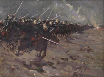 Keywords: Emilian Lazarescu - Sarja de cavalerie.jpg Artwork Creator Emilian Lăzărescu The cavalry charge La carga de caballería La charge de cavalerie The cavalry charge depicting World War I events Şarja de cavalerie < 1935 oil on canvas cm 24 5 33 private collection accession number object history http //www tudor-art com/main php category vand language 0 id 1924 disciplina 1 ses da Sold in auction 2009-02-15 credit line Signed lower right in black Semnat dreapta jos cu negru http //alis ro/rezultat/rpictura htm PD-old-auto 1934 Emilian Lăzărescu World War I in Romanian art World War I forces of France Warhorses Cavalry of Romania Cavalry in paintings Cavalry charges Oil on canvas paintings in Romania