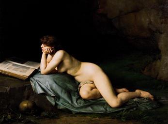 Keywords: Emmanuel Benner, Marie-Madeleine au désert ( Musée d'art moderne et contemporain, Strasbourg ).JPG Artwork Creator Emmanuel Benner 1886 oil on canvas 131 x 175 cm Musée d'art moderne et contemporain de Strasbourg accession number Inv 55 974 0 163 object history Achat en 1895 credit line S D B DR Emmanuel Benner 1886 http //mamcs videomuseum fr/Navigart/images/full_img php src 2FmediaNavigart 2Fplein 2F3H 2F00 2F3H00008 JPG is_sel 0 iid 4462 cnt so ccex 0 PD-old-100-1923 Emmanuel Benner Paintings in the Musée d'art moderne et contemporain de Strasbourg 19th-century paintings in Alsace 1886 paintings Paintings of females with skulls Paintings of penitent Magdalene Paintings of nude females in nature Nude females reading in art Paintings of nude women reading Paintings of nude reclining females Women with books in art 19th-century paintings of Mary Magdalene 19th-century oil on canvas paintings in France 1880s paintings in France 1886 works in Alsace Nude women bare feet apparent