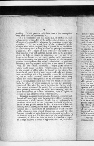 Keywords: Encouragements and Warnings p14.JPG en Speech of National Civil Service Reform League president Carl Schurz before its annual meeting of December 10 1896 in Philadelphia p 14 Single page scan 200 dpi Carl Schurz Encouragements and Warnings National Civil Service Reform League 1896; courtesy of Boston Public Library Carl Schurz 1896-12-10 PD-Old Encouragements and Warnings Page Images |