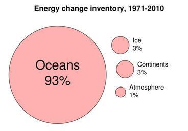 | Keywords: Energy change inventory, 1971-2010.svg anthropogenic i e human greenhouse gases has been distributed on the Earth This is referred to as radiative imbalance where less energy leaves Earth's atmosphere than enters it Earth has been in radiative imbalance since at least the 1970s Most of this extra energy has been absorbed by the oceans Data The following data shows how the extra energy trapped mainly by anthropogenic greenhouse gases has been distributed on the Earth between 1971 and 2010 Oceans 93 Ice 3 Continents 3 Atmosphere 1 The biggest uncertainty is found in the energy invertory of the deep ocean more than 700 m due to a scarcity of data points The deep ocean accounts for 29 procent of the total extra energy trapped Further information can be found in the source listed in the references section References citation 2013-06-07 Rhein M et al Qin D and T Stocker Box 3 1 in Chapter 3 Observations Ocean final draft Climate Change 2013 The Physical Science Basis Working Group I Contribution to the Intergovernmental Panel on Climate Change IPCC 5th Assessment Report http //www climatechange2013 org/images/uploads/WGIAR5_WGI-12Doc2b_FinalDraft_Chapter03 pdf http //www ipcc ch/report/ar5/wg1/ IPCC pp 11-12 pp 14-15 of PDF chapter 2013-10-25 own Enescot Change in total heat content of earth svg Comma-separated values In this graph the area of the circles is proportional to the sink's absorption of energy The radius of the circles equals the square root of area / Ï Data were exported from OpenOffice org 4 0 0 Calc as comma separated values csv The following options were used Character set Western Europe 1252 Field delimiter Text delimiter Quote all text cells no Save cell content as shown yes Fixed column width no <pre> Sink a area r radius d diameter Oceans 93 5 4408473067 10 8816946134 Ice 3 0 9772050238 1 9544100476 Continents 3 0 9772050238 1 9544100476 Atmosphere 1 0 5641895835 1 1283791671 </pre> cc-zero Uploaded with UploadWizard Global warming graphs |