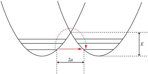 Keywords: Energy Well Model.png en Diagram of a energy well for a proton tunneling reaction own Chem540f09grp3 Chemical kinetics Physical organic chemistry
