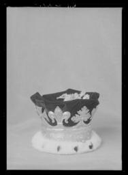 | Keywords: Engelsk rangkrona - Livrustkammaren - 44339.tif Stämplar på kronringen SG gående lejon lejonhuvud en face S Garrard London 1901 <br/><br/>Kronring av förgyllt silver ringen kantad av två blanka band med grupper om fyra sneda räfflor på ringen imiterade infattade stenar omväxlande ovala och fyrkantiga mellan stenarna två pärlor Från ringen utgår åtta spetsar fyra i form avliljor två mantuakors och två smultronblad samtliga h 47 mm Runt ringens neder kant fastsytt pälsbräm hermelinsimitation <br/><br/>Mössa av purpurfärgad sammet med guldtofs i kullens mitt Foder av vit sidenrips med firmamärke i guldtryck i kullen R S GARRARD Co // Goldsmiths Jewellers // TO THE CROWN // 25 HAYMARKET LONDON samt engelsk kunglig krona Två sidenband korsade inuti mössan Igenom kronringen stucket två ca 100 mm långa hårnålar <br/><br/>Krontyp för souvereigns grandchildren issue of sons in the direct line Begagnad av Lady Patricia Ramsay vid Elisabeth II s kröning 1953 <br/><br/>Med blyerts Lämnade i 21/1 konungens våning hovfröken Reuterswärd den 28 1 1953 tills m nr 52/2 Åter i LRK 17/6 1953 original caption engelsk rangkrona - LRK 64 Edward VII s kröning Drottning Elisabeth II s kröning 1901 silver - silk Färg vit d2 - dräkt - foder material siden - velvet Färg purpur material sammet - gold thread d4 - dräkt - passpoaler band kantning uppslag material guldtråd g 230 size mm 112 130 LRK Gustaf VI Adolf av Sverige kung hertig av Skåne 1882- Stockholms slott Sverige Margareta av Sverige kronprinsessa 1882-1920 Prinsessor Drottningar - kvinnlighet och makt 1999 Fest och fritid vid hovet 2003 R S GARRARD Co Goldsmiths Garrard Co R S S G Garrard Co R S R S GARRARD Co Goldsmiths Garrard Co R S S G Garrard Co R S place of origin London original filename LN_B12495_015375 36520 inventory number LRK 64 44339 CC0 Engelsk rangkrona - Livrustkammaren - 44339-negative tif <gallery caption Different images of same object > File Engelsk rangkrona - Livrustkammaren - 52900 tif File Krona Prinsessan Margareta - Livrustkammaren - 87044 tif </gallery> Headgear Media contributed by LSH unmatched event Media contributed by LSH unmatched creator Garrard Co Media contributed by LSH 2013-10 |