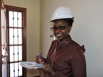 Keywords: engineer female engineering woman working helmet women smiling happy professional