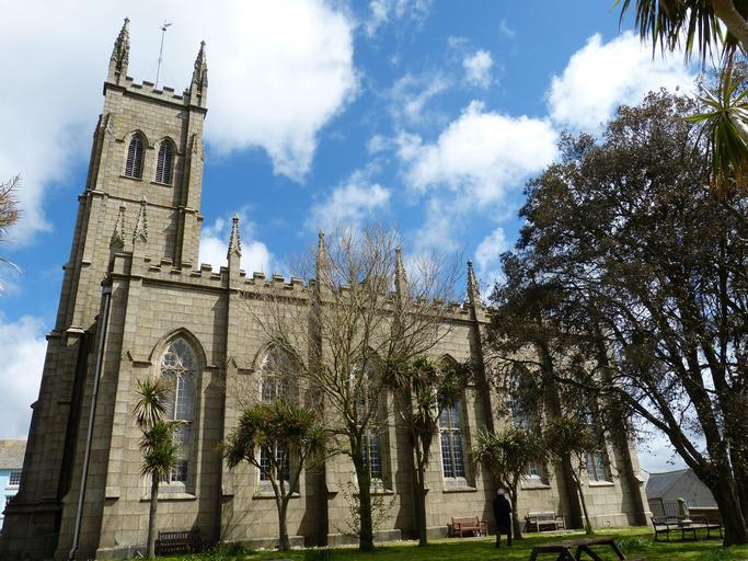 Keywords: england cornwall pensance tower church historically steeple architecture united kingdom gothic clouds facade