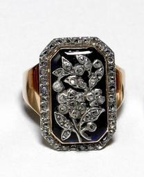 Keywords: English - Finger Ring - Walters 571785 - Top.jpg The octagonal bezel is set with a floral spray on foiled blue enamel ground set with diamonds between 1750 1800 gold enamel diamond silver beze cm 2 06 ; hoop cm 1 75 d accession number 57 1785 23152 Henry Walters Baltimore date and mode of acquisition unknown Laura F Delano New York date of acquisition unknown by gift Walters Art Museum Gift of Laura F Delano 1947 Jewelry - Ancient to Modern The Walters Art Gallery Baltimore 1979-1980 place of origin England United Kingdom Walters Art Museum license Jewellery in the Walters Art Museum Art of England Media contributed by the Walters Art Museum needs category review |