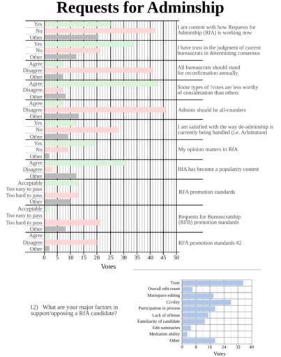 | Keywords: English Wikipedia adminship survey graph - Requests for Adminship.svg Graph based on data from a summary of en Wikipedia Adminship survey as of 6 Apr 2007 18 17 UTC Created by Editor at Large from information provided by Cool Cat 2007-04-07 own assumed Editor at Large Admin statistics for English Wikipedia |
