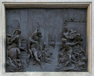 Keywords: Enlèvement Sabines Giambologna Florence.jpg fr L'enlèvement des Sabines par Jean de Bologne Plaque de bronze sur le socle de la statue du même nom loggia dei Lanzi Florence Italie en The rape of the Sabine women by Giambologna Bronze plaque on the pedestal of the statue loggia dei Lanzi Florence Italy 2011-06-02 own Jebulon 43 46 9 4 N 11 15 19 7 E cc-zero Uploaded with UploadWizard Rape of the Sabine Women at Loggia dei Lanzi |