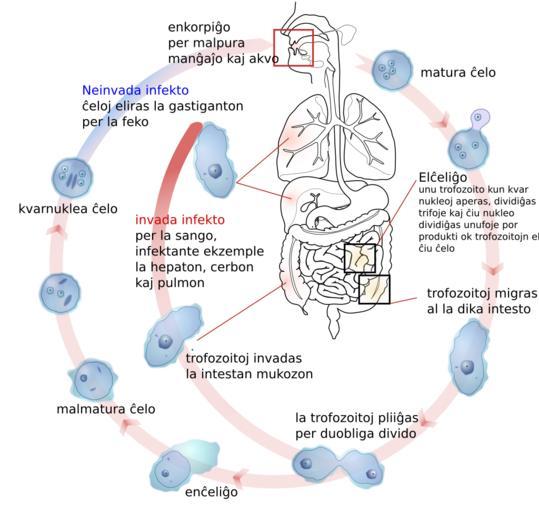 MAKE A MEME View Large Image Entamoeba histolytica life cycle-eo.svg en lifecycle of Entamoeba histolytica an parasitic protozoan - labelled in Esperanto amebo Entamoeba histolytica unuĉela parazito - priskriboj en Esperanto de Lebenszyklus der Amöbe Entamoeba ...