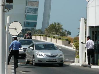 | Keywords: Entrance to the Burj Al Arab 2.jpg Entrance to the Burj Al Arab with a security checkpoint in Dubai United Arab Emirates Vehicles reach the Burj Al Arab through crossing a bridge after they have passed the security checkpoint Commonist no icon Own 2009-09-23 09 41 06 User CT Cooper/Author 25 8 17 9 N 55 11 17 49 E region AE_heading N NoFoP-UAE Personality rights Images by User CT Cooper Taken with Panasonic Lumix DMC-TZ3 Burj Al Arab Security in the United Arab Emirates | ||||