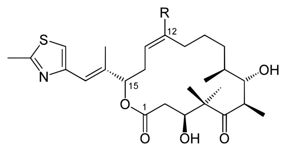Keywords: Epothilone C D.svg Strukturen von Epothilon C R H bzw D R CH3 de structures of epothilone C R H bzw D R CH3 en Own 2008-05-19 Yikrazuul Epothilones