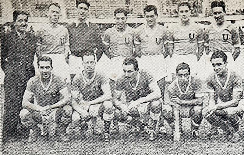 Keywords: Equipo U de Chile - 1940.jpg es EL cuadro de la Universidad de Chile que batió al de la Universidad Católica por 3 goles a 0 durante el clásico universitario que este año se jugó en homenaje al Canciller del Brasil Excmo Sr ARANHA http //www memoriachilena cl/602/w3-article-72203 html author 1941 PD-old 1941 in association football Club de Fútbol Universidad de Chile |