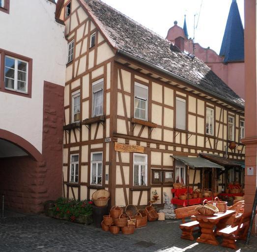 | Keywords: ErbachOdwStädtel2.JPG de Das Fachwerkhaus Im Städtel 2 in Erbach Odenwald grenzt an die Tordurchfahrt des Alten Rathauses zum Marktplatz mit Nutzung als Ladengeschäft žKorb-Welten Vor dem Haus eine Ausstellung von Korbwaren und einer wetterfesten Sitzgarnitur aus Vollholz bestehend aus Tisch und Bänken own Brühl 2013-09-06 Timber framing in Odenwaldkreis Economy of Odenwaldkreis | ||||